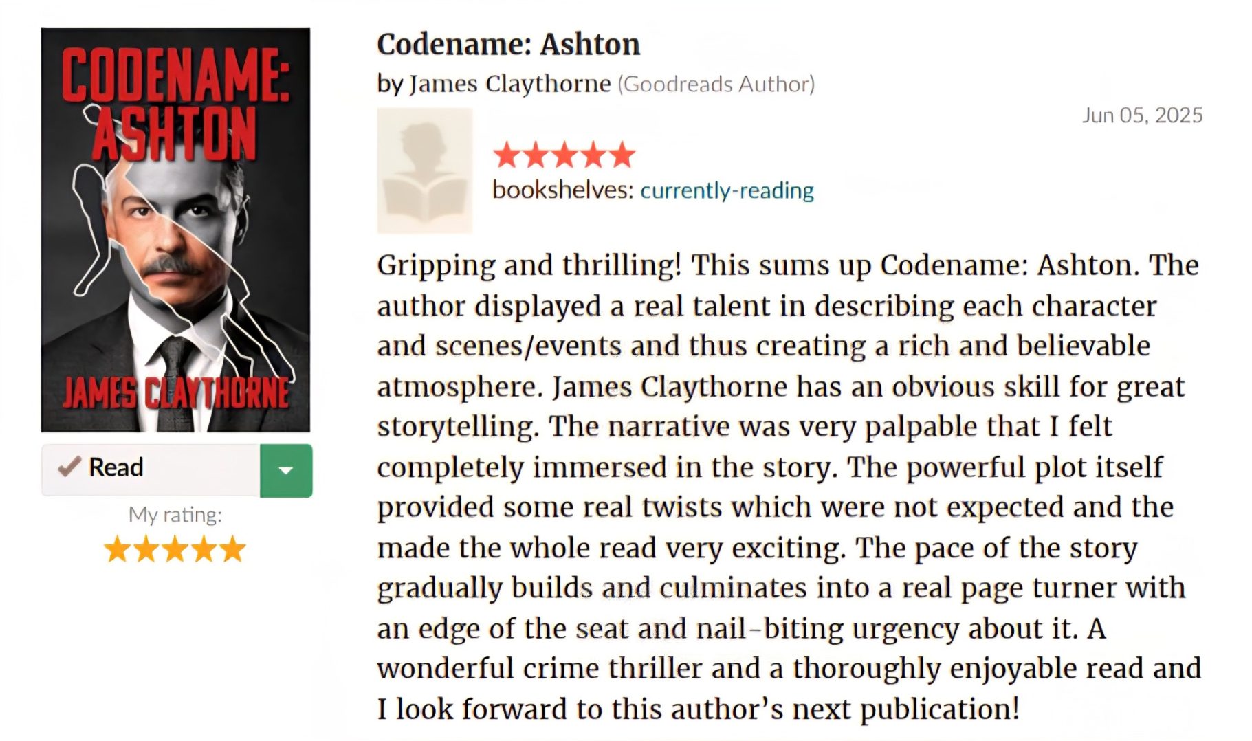 James Claythorne's debut novel, "Codename Ashton", lends itself to a long history of spy thrillers, mystery and stories with complex characters and historical elements.